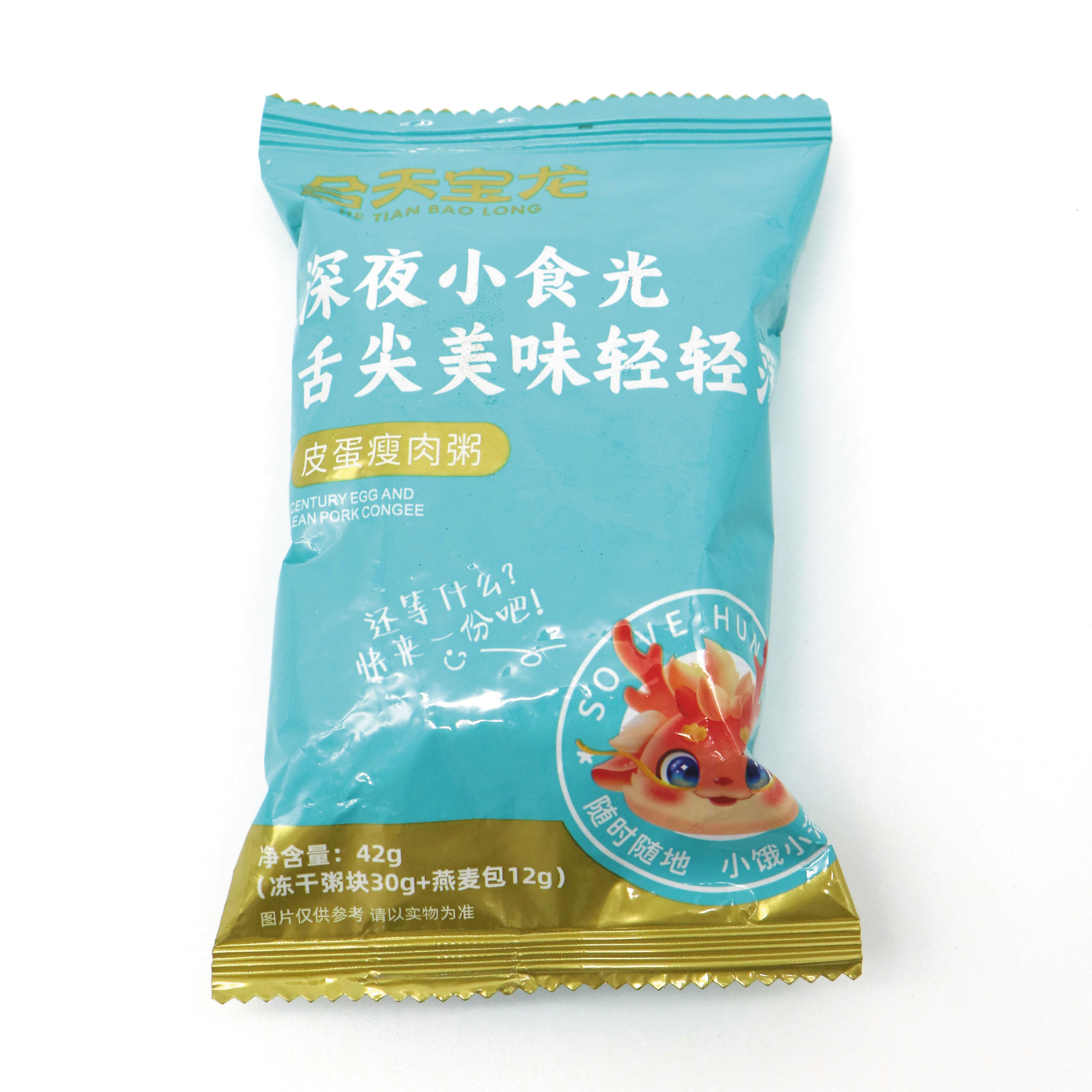 这款冻干皮蛋瘦肉粥以查哈阳弱碱粥米为基底,经FD冻干技术在零下环境中极速锁鲜,将现熬粥的绵密口感与食材本味定格——米粒保留久煮不烂的Q弹嚼劲,腌制瘦肉丝复水后鲜嫩不柴,溏心皮蛋丁裹着独特咸香,三者在冻干块中形成黄金配比。食用时仅需注入开水焖泡5分钟,冰晶迅速升华,粥体瞬间恢复浓稠,米香、蛋香、肉香交织升腾,即刻复刻早茶铺现熬的地道风味,无需明火烹饪,便能在办公室、旅途或深夜为你送上暖胃又便捷的舌尖慰藉。